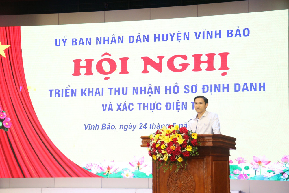 Cũng tại Hội nghị, đồng chí Chủ tịch UBND huyện đã thông qua kế hoạch của UBND huyện về triển khai thu nhận hồ sơ định danh và xác nhận điện tử cho Nhân dân trên địa bàn huyện. Theo đó, huyện Vĩnh Bảo xác định, việc kích hoạt tài khoản định danh điện tử cho Nhân dân là một trong những giải pháp để hoàn thành nhiệm vụ của Đề án 06/CP theo đúng tinh thần chỉ đạo của Thủ tướng Chính phủ, Bộ Công an và các bộ, ban, ngành liên quan. Trong đó trọng tâm là hoàn thành cấp tài khoản định đanh điện tử cho công dân, góp phần thúc đẩy xây dựng chính quyền số, kinh tế số, xã hội số, công dân số trên địa bàn huyện. Mục tiêu đến trước ngày 30/6 hoàn thành cấp tài khoản định danh điện tử cho 100% công dân đủ điều kiện trên địa bàn huyện.