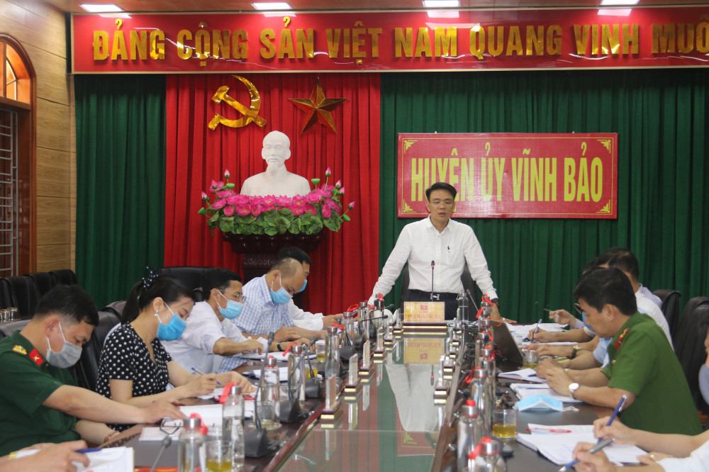 Chiều 4/5, Ban Thường vụ Huyện ủy Vĩnh Bảo tổ chức Hội nghị trực tuyến đánh giá công tác phòng chống dịch bệnh COVID-19; công tác chuẩn bị bầu cử đại biểu Quốc hội khóa XV và đại biểu HĐND nhiệm kỳ 2021-2026. Hội nghị được kết nối điểm cầu từ phòng họp Huyện ủy đến phòng họp của UBND huyện và 30 xã, thị trấn trên địa bàn huyện. Đồng chí Phạm Quốc Ka, Thành ủy viên, Bí thư Huyện ủy chủ trì hội nghị.