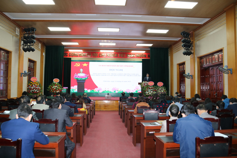 Năm 2022, huyện Vĩnh Bảo xác định 19 chỉ tiêu, 11 giải pháp thuộc 4 nhóm nhiệm vụ thi đua quyết tâm hoàn thành thắng lợi, toàn diện chỉ tiêu, nhiệm vụ năm 2022.
