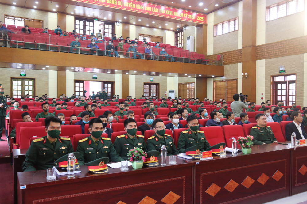 Do những diễn biến phức tạp của tình hình dịch bệnh COVID-19, cùng với huyện Kiến Thụy và quận Dương Kinh, sáng 9/3, tại Trung tâm Văn hóa Nguyễn Bỉnh Khiêm, huyện Vĩnh Bảo tổ chức Lễ giao quân đợt 2 gồm 130 tân binh về các đơn vị của Sư đoàn 395 Quân khu 3 đóng trên địa bàn thành phố Chí Linh, tỉnh Hải Dương.