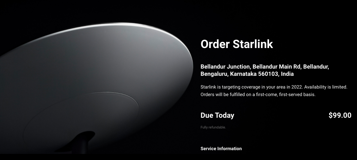 Người dùng có thể đặt hàng sớm dịch vụ Internet vệ tinh Starlink với giá “cọc” 99 USD, và chờ đến 2022 để có thêm thông tin. Tuy nhiên, không phải ai đặt cọc trên website cũng sẽ truy cập được Internet của Starlink vì còn phụ thuộc nhiều yếu tố.