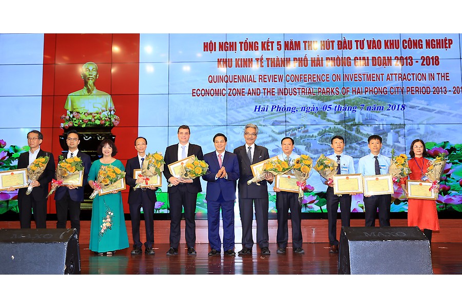5 năm qua, thu hút đầu tư vào KCN, KKT Hải Phòng đạt kết quả vượt bậc, đột phá với tổng vốn FDI đạt hơn 9,06 tỷ USD, bằng 73% so với tổng số vốn FDI thu hút trong 25 năm với 149 dự án cấp mới. Thu hút vốn trong nước đạt 70.560 tỷ đồng, bằng 72% tổng số vốn của cả 25 năm. Đáng chú ý là sức hấp dẫn của các KCN, KKT ngày càng mạnh mẽ, đã có nhiều dự án trị giá hàng tỷ USD trở lên với công nghệ cao, sử dụng ít năng lượng, thân thiện với môi trường của nhiều tập đoàn kinh tế lớn trong và ngoài nước. Các dự án trong KCN, KKT đóng góp hơn 60% giá trị sản xuất công nghiệp; hơn 70% kim ngạch xuất khẩu; 20% số thu ngân sách của thành phố, tạo việc làm cho hơn 100.000 lao động. BQL Khu Kinh tế Hải Phòng phát huy tốt vai trò trong xúc tiến đầu tư, CCHC, gắn bó, đồng hành, chăm lo hỗ trợ và giải quyết kịp thời các khó khăn, vướng mắc, bảo đảm các điều kiện tốt nhất cho nhà đầu tư, doanh nghiệp đầu tư vào KCN, KKT…