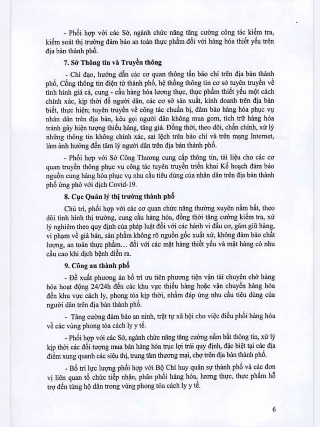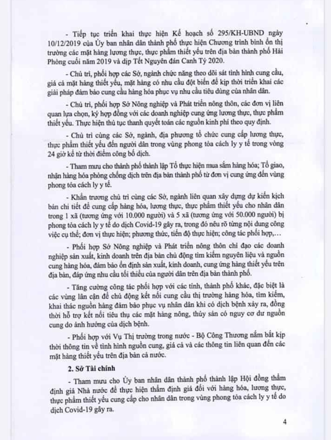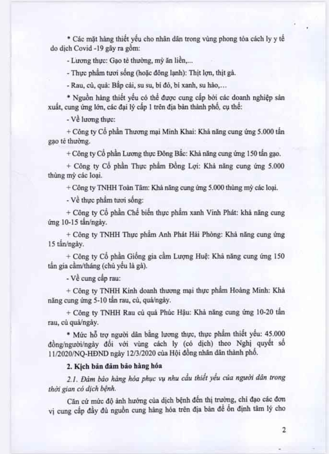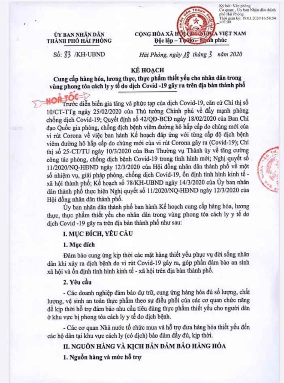 Để bảo đảm cung ứng kịp thời các mặt hàng thiết yêu phục vụ đời sống nhân dân khi xảy ra dịch bệnh do vi-rút Covid-19 gây ra, góp phần đảm bảo an sinh xã hội và ổn định tình hình kinh tế – xã hội trên địa bàn thành phố. Ngày 18/3/2020, Ủy ban nhân dân thành phố đã ban hành Kế hoạch cung cấp hàng hóa, lương thực, thực phẩm thiết yếu cho nhân dân trong vùng phong tỏa cách ly y tế do dịch COVID-19 gây ra trên địa bàn thành phố.