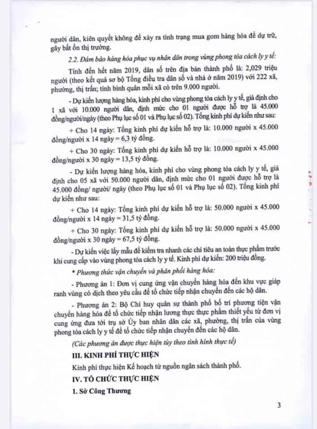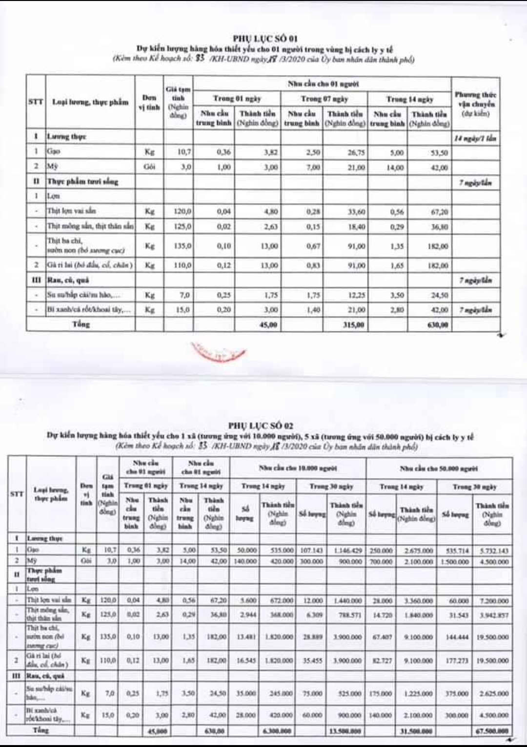 * Mức hỗ trợ người dân bằng lương thực, thực phẩm thiết yếu: 45.000 đồng/người/ngày đối với vùng cách ly (có dịch) theo Nghị quyết số 11/2020/NQ-HĐND ngày 12/3/2020 của Hội đồng nhân dân thành phố.