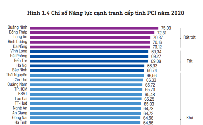 Mục tiêu phấn đấu 10 chỉ số thành phần trong năm 2021 đạt mức như sau: Chỉ số Chi phí gia nhập thị trường đạt từ 7,5 điểm trở lên, xếp thứ hạng từ vị trí 35 trở lên. Chỉ số Tiếp cận đất đai đạt từ 7 điểm trở lên, xếp thứ hạng từ vị trí 40 trở lên. Chỉ số Tính minh bạch đạt từ 6,5 điểm trở lên, xếp thứ hạng từ vị trí 26 trở lên. Chỉ số Chi phí thời gian đạt từ 7,5 điểm trở lên, xếp thứ hạng từ vị trí 40 trở lên. Chỉ số Chi phí không chính thức đạt từ 7 điểm trở lên, xếp thứ hạng từ vị trí 30 trở lên. Chỉ số Cạnh tranh bình đẳng đạt từ 6,9 điểm trở lên, xếp thứ hạng từ vị trí 9 trở lên. Chỉ số Tính năng động đạt từ 7 điểm trở lên, xếp thứ hạng từ vị trí 14 trở lên. Chỉ số Dịch vụ hỗ trợ doanh nghiệp đạt từ 7 điểm trở lên, xếp thứ hạng từ vị trí 14 trở lên. Chỉ số Đào tạo lao động đạt từ 8,3 điểm trở lên, xếp vị trí thứ 1. Chỉ số Thiết chế pháp lý và an ninh trật tự đạt từ 7,3 điểm trở lên, xếp thứ hạng từ vị trí 13 trở lên.