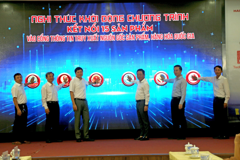 Tại Hội thảo, lãnh đạo UBND thành phố, lãnh đạo Tổng cục Tiêu chuẩn Đo lường Chất lượng và đại diện lãnh đạo các doanh nghiệp bấm nút kết nối 15 sản phẩm vào Cổng thông tin truy xuất nguồn gốc sản phẩm, hàng hóa quốc gia.