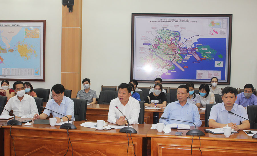 Đồng chí Lê Trung Kiên, Ủy viên Ban Thường vụ Thành ủy, Trưởng Ban Quản lý Khu Kinh tế Hải Phòng chủ trì Hội nghị. Dự Hội nghị có đại diện lãnh đạo huyện Cát Hải.