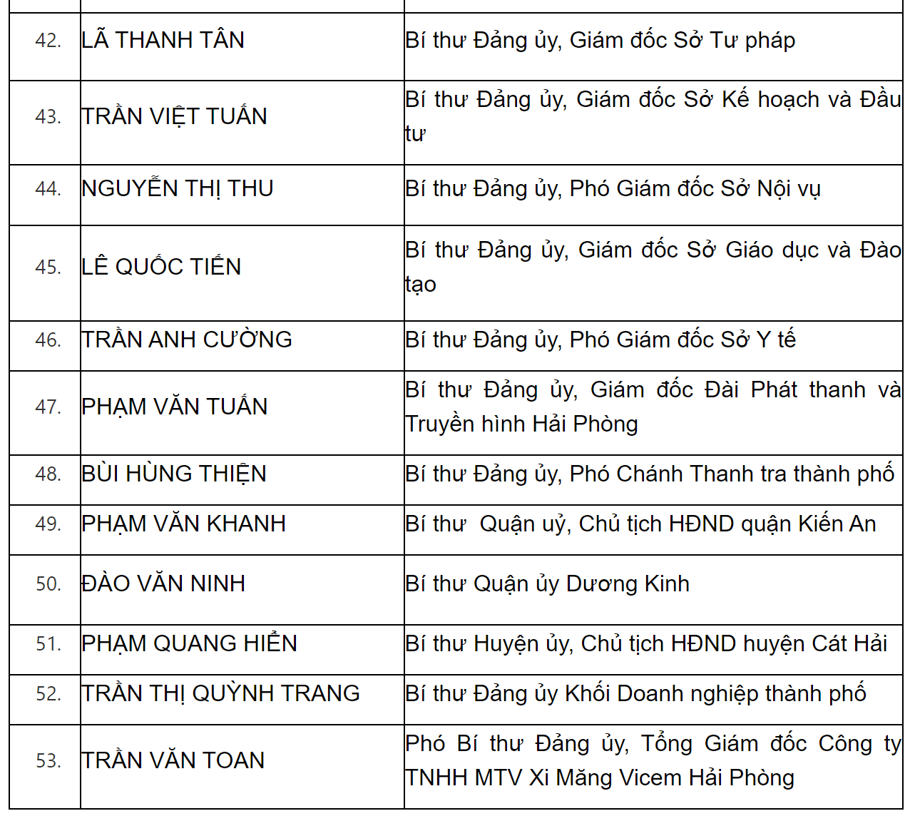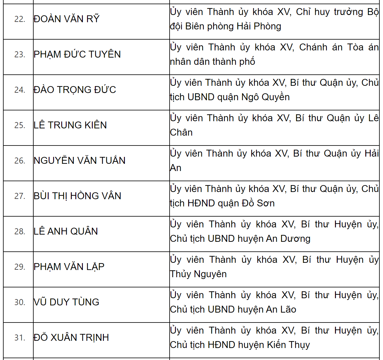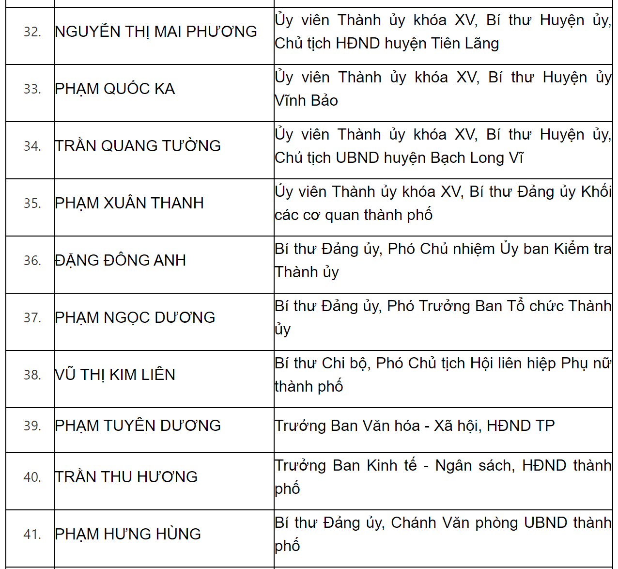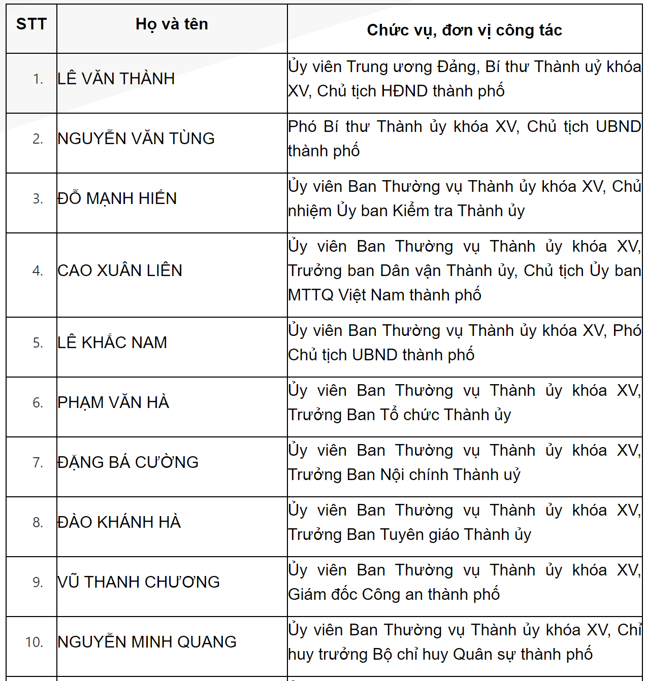 1. Hội nghị đã bầu đồng chí Lê Văn Thành, Ủy viên Ban Chấp hành Trung ương Đảng, Bí thư Thành ủy khóa XV, Chủ tịch HĐND thành phố tiếp tục giữ chức vụ Bí thư Thành ủy khóa XVI.