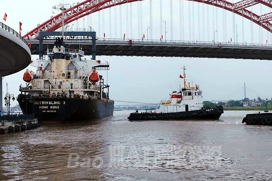 Chiều 21/4, các đồng chí: Trần Lưu Quang, Ủy viên Trung ương Đảng, Bí thư Thành ủy, Trưởng đoàn Đại biểu Quốc hội thành phố Hải Phòng; Nguyễn Văn Tùng, Chủ tịch UBND thành phố; Nguyễn Đức Thọ, Phó chủ tịch UBND thành phố cùng đại diện lãnh đạo các cơ quan liên quan đến hiện trường chỉ đạo công tác di dời tàu biển Outrivaling 3, số IMO 9623623 (quốc tịch Hong Kong, Trung Quốc) bị mắc kẹt do va vào lan can bờ kè khu vực cạnh cầu Hoàng Văn Thụ.
