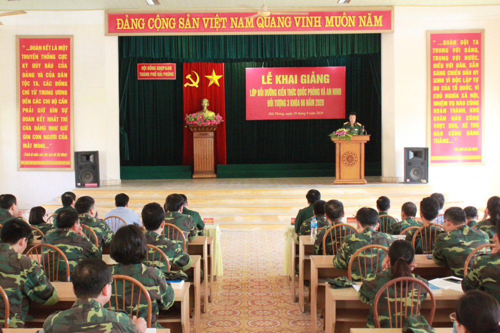 Sáng 29/9, Hội đồng giáo dục và an ninh thành phố Hải Phòng tổ chức khai giảng lớp Bồi dưỡng kiến thức quốc phòng và an ninh đối tượng 3 khóa 66.