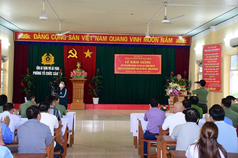 Dự lễ khai giảng có Thượng tá Trịnh Tuấn Anh, Trưởng phòng Cảnh sát QLHC về TTXH, đại diện lãnh đạo một số phòng nghiệp vụ chức năng CATP, lãnh đạo các doanh nghiệp kinh doanh dịch vụ bảo vệ.