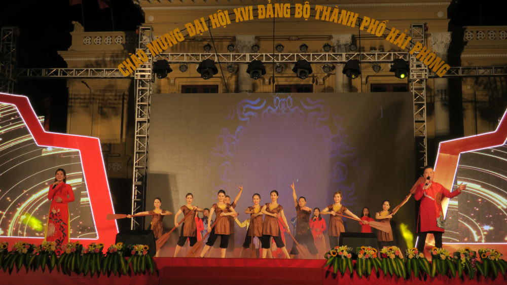 Tối 6/10, trong không khí tưng bừng, phấn khởi chào mừng Đại hội Đảng bộ thành phố lần thứ XVI, tại quảng trường Nhà hát thành phố, các nghệ sĩ, diễn viên múa của Đoàn Ca múa Hải Phòng biểu diễn chương trình nghệ thuật “Thành phố mặt trời lên”. Đây là chương trình khai mạc chuỗi các hoạt động văn hóa, thể thao chào mừng Đại hội XVI Đảng bộ thành phố.