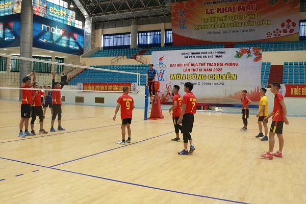 Sáng 22/4, tại Nhà thi đấu đa năng-Khu Liên hợp thể thao thành phố, Sở Văn hóa và Thể thao tổ chức khai mạc thi đấu môn Bóng chuyền trong chương trình Đại hội thể dục thể thao thành phố Hải Phòng lần thứ 9 năm 2022.