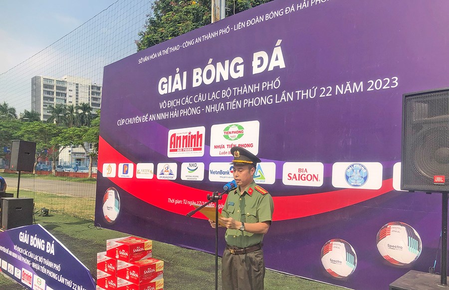 Phát biểu tại Lễ khai mạc Giải, Thiếu tá Nguyễn Việt Hưng, Phó Trưởng Ban Chuyên đề An ninh Hải Phòng nhấn mạnh: Giải Bóng đá vô địch các Câu lạc bộ thành phố Cúp Chuyên đề An ninh Hải Phòng-Nhựa Tiền Phong lần thứ 22 năm 2023 được Chuyên đề An Ninh Hải Phòng phối hợp với các đơn vị thực hiện là hoạt động thể thao ý nghĩa chào mừng 78 năm truyền thống lực lượng Công an nhân dân, góp phần đẩy mạnh phong trào “Toàn dân rèn luyện thân thể theo gương Bác Hồ vĩ đại” thành phố Hải Phòng giai đoạn 2021-2030, phong trào tập luyện và thi đấu Bóng đá trong lực lượng thanh niên trên toàn thành phố. Trải qua nhiều năm, giải đấu đã tạo nên sân chơi vui, khỏe, bổ ích cho thanh thiếu niên trên địa bàn thành phố, lan toả hình ảnh Chuyên đề An ninh Hải Phòng và quảng bá thương hiệu của các doanh nghiệp kinh doanh sản xuất phát triển lành mạnh. Thiếu tá Nguyễn Việt Hưng đề nghị các Vận động viên về dự giải tiếp tục phát huy tinh thần đoàn kết, trung thực, thi đấu với quyết tâm cao đồng thời chấp hành nghiêm túc các quy định của Ban Tổ chức. Các đồng chí trọng tài tập trung điều hành giải một cách vô tư, khách quan, nghiêm túc, đúng luật và Điều lệ giải. Các đơn vị trực thuộc Công an thành phố làm nhiệm vụ đảm bảo an ninh trật tự tại giải nâng cao tinh thần trách nhiệm, chủ động nắm tình hình đảm bảo tuyệt đối an toàn cho Ban Tổ chức, Vận động viên các đội bóng và Cổ động viên đến sân tham dự Giải.