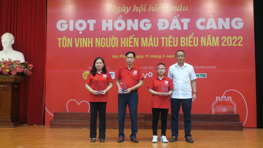 Để kịp thời động viên, khích lệ tinh thần những tập thể, cá nhân và gia đình người hiến máu tình nguyện tiêu biểu, Ban Chỉ đạo vận động hiến máu tình nguyện thành phố đã giới thiệu 2 cá nhân người hiến máu tiêu biểu xuất sắc tham dự Lễ tôn vinh 100 người hiến máu Việt Nam và sự kiện toàn cầu “Ngày Quốc tế người hiến máu 14/6” là anh Đặng Xuân Ninh, Phó Bí thư Chi đoàn Thanh tra Công an thành phố với 22 lần hiến máu, và anh Phạm Thanh Hải, Phó trưởng Khoa Phẫu thuật tiết niệu và Nam học Bệnh viện Hữu nghị Việt Tiệp với 28 lần hiến máu cứu người. Tại chương trình hôm nay, 3 cá nhân được nhận Bằng khen của Trung ương Hội Chữ thập đỏ Việt Nam, 1 gia đình và 21 cá nhân được UBND thành phố tặng Bằng khen, 8 cá nhân được Thành đoàn Hải Phòng tặng Bằng khen, 1 gia đình và 62 cá nhân nhận Giấy khen của Ban Chỉ đạo Vận động hiến máu tình nguyện thành phố.