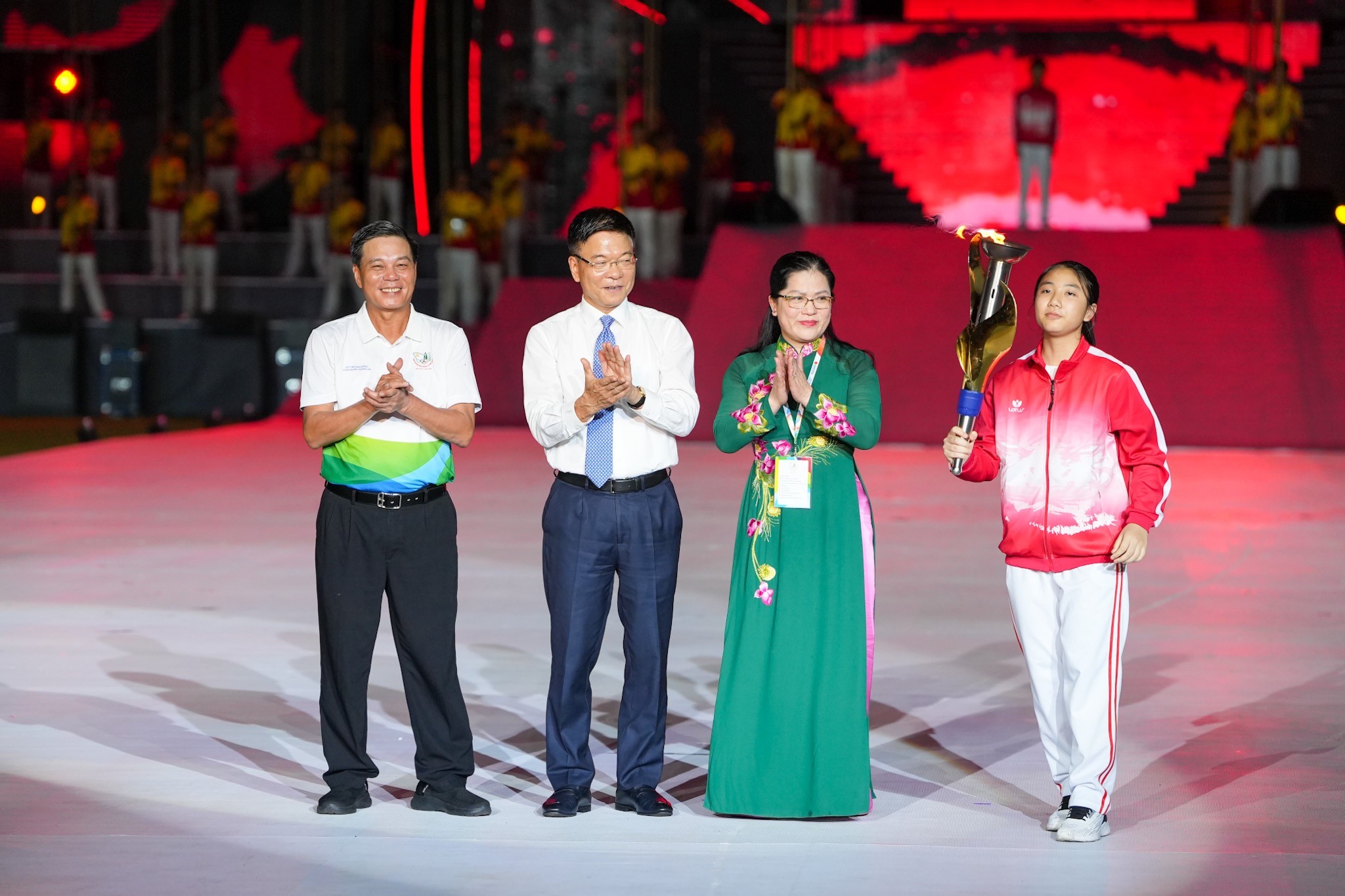 Tại Lễ khai mạc, Phó Thủ tướng Chính phủ Lê Thành Long; Thứ trưởng Bộ GD&ĐT, Trưởng Ban Chỉ đạo Hội khỏe Nguyễn Thị Kim Chi và Chủ tịch UBND thành phố Nguyễn Văn Tùng tiếp nhận ngọn đuốc thiêng liêng truyền thống của Hội khỏe trao cho VĐV tiêu biểu thắp lên ngọn lửa Đại hội.