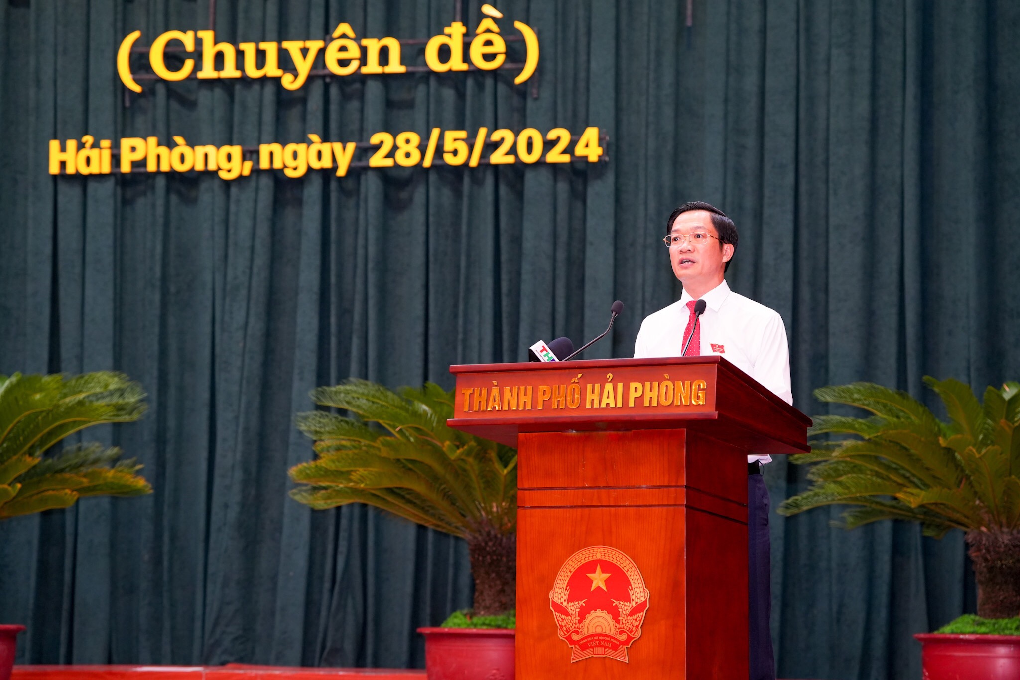 Phát biểu khai mạc Kỳ họp, Chủ tịch HĐND thành phố Phạm Văn Lập nêu rõ, Kỳ họp sẽ xem xét cho ý kiến, quyết nghị các nội dung: Điều chỉnh địa giới đơn vị hành chính, thành lập thành phố Thủy Nguyên thuộc thành phố Hải Phòng và thành lập các phường, xã thuộc thành phố Thủy Nguyên. Đề án thành lập quận An Dương thuộc thành phố Hải Phòng và thành lập các phường thuộc quận An Dương. Đề án Điều chỉnh địa giới đơn vị hành chính, thành lập các phường mới thuộc quận Hồng Bàng, thành phố Hải Phòng. Đề án sắp xếp đơn vị hành chính cấp xã giai đoạn 2023-2025 của thành phố Hải Phòng.