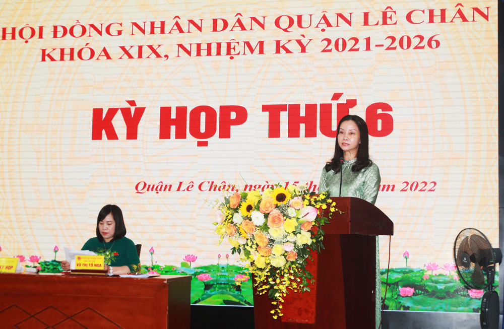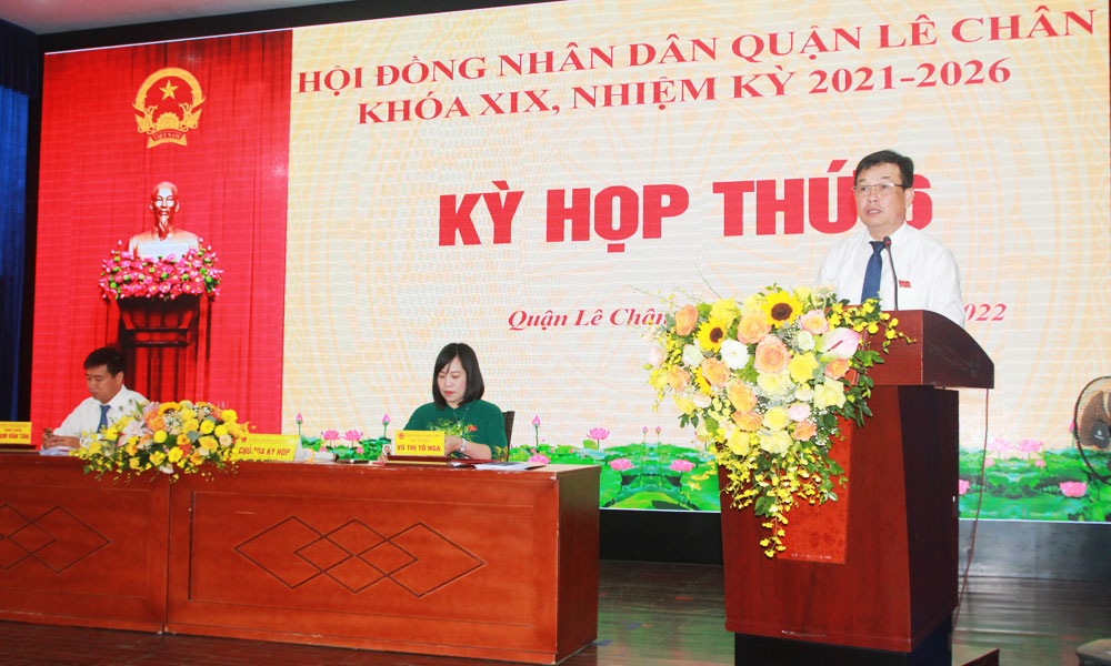 Kỳ họp được tiến hành trong 1 ngày, các đại biểu được nghe đại diện lãnh đạo UBND quận báo cáo kết quả thực hiện nhiệm vụ, chỉ tiêu kinh tế-xã hội 6 tháng đầu năm; nhiệm vụ, giải pháp 6 tháng cuối năm 2022; trình Tờ trình về phê chuẩn quyết toán ngân sách quận năm 2021; Báo cáo kết quả giải quyết ý kiến, kiến nghị của cử tri tại kỳ họp thứ 4 HĐND quận; trình Tờ trình về điều chỉnh, bổ kế hoạch đầu tư công trung hạn 5 năm 2021-2025; kế hoạch đầu tư công năm sung 2022; dự kiến kế hoạch đầu tư công năm 2023; quyết định chủ trương đầu tư các dự án phục vụ chuyển đổi số quận Lê Chân.