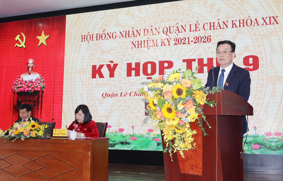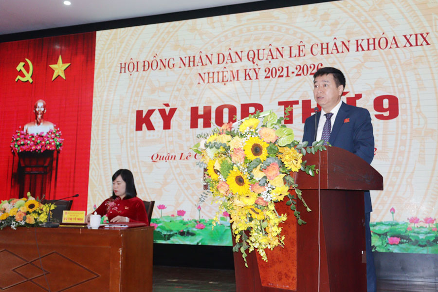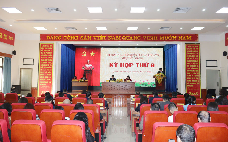 Sáng 26/12, HĐND quận Lê Chân tổ chức khai mạc Kỳ họp thứ 9 HĐND quận khóa XIX, nhiệm kỳ 2021-2026 thực hiện các nội dung theo quy định và quyết định các vấn đề quan trọng khác thuộc thẩm quyền của HĐND quận. Dự kỳ họp có đồng chí Lã Tân Tân, Ủy viên Thành ủy, Phó Trưởng Đoàn chuyên trách Đoàn ĐBQH thành phố Hải Phòng.