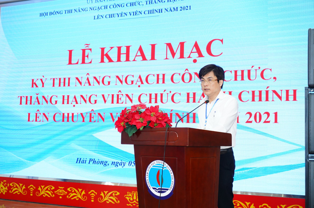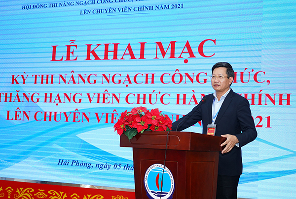 Sáng 5/4, tại Trung tâm Giáo dục thường xuyên Hải Phòng, Phó Chủ tịch Thường trực UBND thành phố Lê Anh Quân, Chủ tịch Hội đồng thi nâng ngạch công chức, thăng hạng viên chức hành chính lên chuyên viên chính năm 2021 chủ trì Lễ khai mạc kỳ thi nâng ngạch công chức, thăng hạng viên chức hành chính lên chuyên viên chính năm 2021.