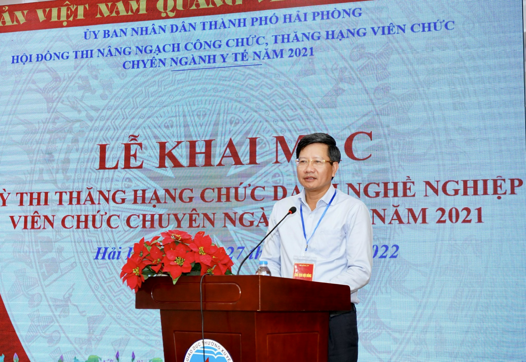 Phát biểu tại Lễ khai mạc kỳ thi, đồng chí Lê Anh Quân, Phó Chủ tịch Thường trực UBND thành phố, Chủ tịch Hội đồng thi nhấn mạnh: Trong 2 năm vừa qua, đại dịch COVID-19 ảnh hưởng đến toàn thế giới trong đó có thành phố Hải Phòng, trong công tác phòng, chống dịch thành phố ghi nhận sự đóng góp đầy tinh thần trách nhiệm, vai trò, sự nỗ lực cố gắng của đội ngũ cán bộ ngành y tế từ cấp thành phố đến cấp cơ sở. Cùng với sự cố gắng chung của cả hệ thống chính trị trong đó có sự đóng góp của đội ngũ cán bộ, công chức, viên chức và người lao động ngành Y tế, góp phần vào thành công phòng, chống dịch của thành phố để thực hiện hiệu quả mục tiêu kép vừa phòng, chống dịch vừa phát triển kinh tế.