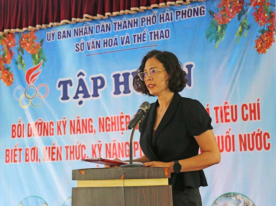 Phát biểu Khai mạc Lớp tập huấn, đồng chí Phạm Thị Tô Trang, Phó Giám đốc Sở Văn hóa và Thể thao nhấn mạnh, Lớp tập huấn được tổ chức nhằm trang bị những kiến thức, năng lực chuyên môn cho đội ngũ cán bộ, công chức, huấn luyện viên, hướng dẫn viên các quận, huyện, giáo viên các trường trên địa bàn thành phố, nâng cao phương pháp dạy bơi, cứu đuối, kỹ năng phòng tránh tai nạn đuối nước, từ đó nhằm giảm thiểu tối đa tỷ lệ tử vong do đuối nước gây ra.