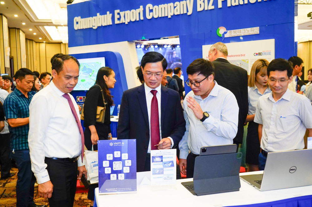 Các đồng chí lãnh đạo cùng các đại biểu dự tham quan các gian hàng trưng bày, giới thiệu sản phẩm công nghệ: