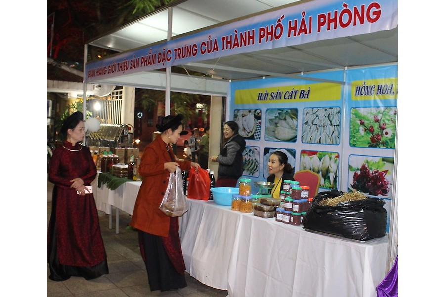 Khu giới thiệu hàng nông sản đặc sắc của Hải Phòng tại Triển lãm.