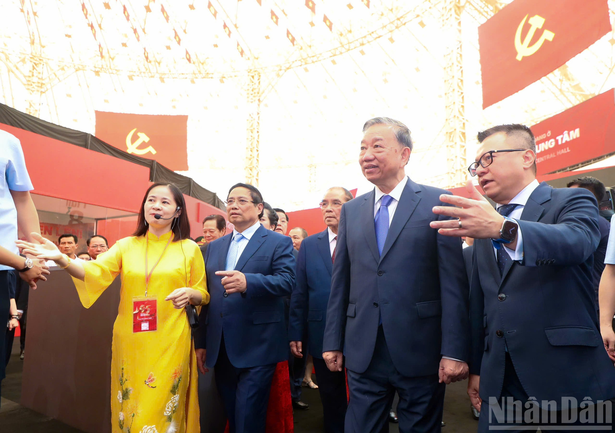 Đến dự Lễ khai mạc Triển lãm có các đồng chí: Tổng Bí thư Tô Lâm; nguyên Tổng Bí thư Nông Đức Mạnh; Thủ tướng Chính phủ Phạm Minh Chính; nguyên Thủ tướng Chính phủ Nguyễn Tấn Dũng; Chủ tịch Quốc hội Trần Thanh Mẫn; nguyên Chủ tịch Quốc hội Nguyễn Thị Kim Ngân; các đồng chí lãnh đạo, nguyên lãnh đạo Đảng, Nhà nước; lãnh đạo các ban, bộ, ngành, địa phương; đại diện các doanh nghiệp tham gia Triển lãm…