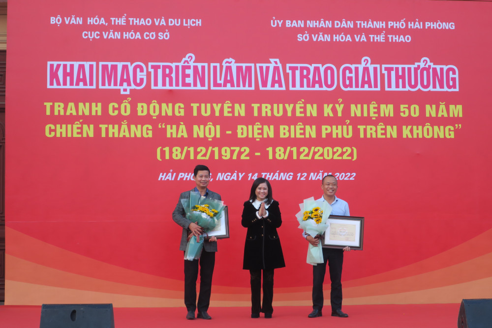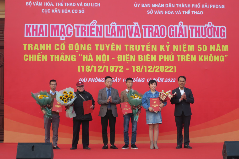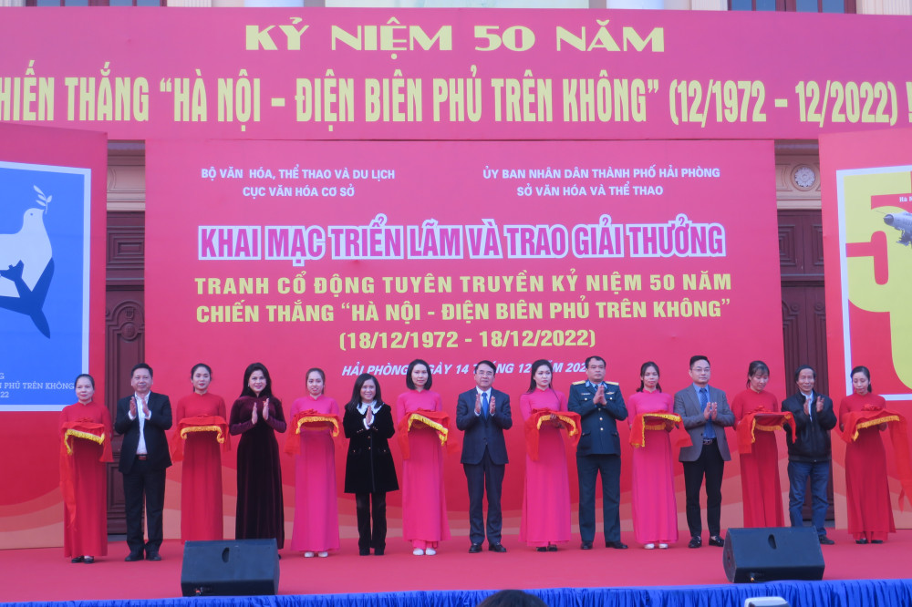 Chiều 14/12, tại Quảng trường Nhà hát thành phố Hải Phòng, Cục Văn hóa cơ sở phối hợp cùng Sở Văn hóa và Thể thao Hải Phòng tổ chức Khai mạc Triển lãm tranh cổ động tấm lớn và trao giải thưởng Cuộc thi sáng tác tranh cổ động tuyên truyền kỷ niệm 50 năm Ngày Chiến thắng Hà Nội-Điện Biên Phủ trên không (18/12/1972-18/12/2022).