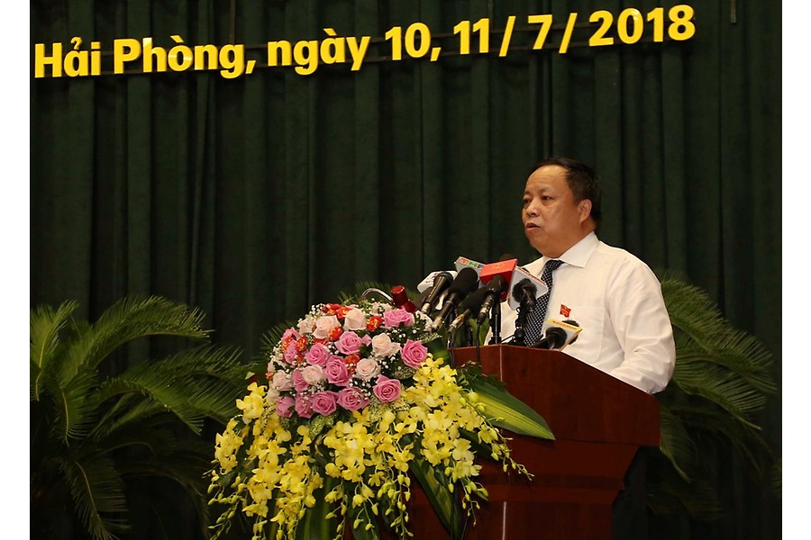 Tiếp theo chương trình, đồng chí Nguyễn Văn Tùng, Chủ tịch UBND thành phố báo cáo tình hình thực hiện nhiệm vụ kinh tế-xã hội, quốc phòng-an ninh 6 tháng đầu năm, nhiệm vụ, giải pháp 6 tháng cuối năm 2018. Nhấn mạnh về nhiệm vụ 6 tháng cuối năm 2018, đồng chí Nguyễn Văn Tùng cho biết, UBND thành phố tập trung thực hiện thực hiện và hoàn thành việc tổng kết 15 năm thực hiện Nghị quyết số 32-NQ/TƯ về xây dựng và phát triển Hải Phòng trong thời kỳ công nghiệp hóa, hiện đại hóa đất nước. Trong đó, thực hiện rà soát khả năng thực hiện các chỉ tiêu kế hoạch đề ra, thực hiện tốt các cơ chế, chính sách đã ban hành và kịp thời có giải pháp khắc phục các yếu kém, hạn chế để phấn đấu hoàn thành vượt mức các chỉ tiêu nhiệm vụ của năm 2018, tạo đà tiếp tục phát triển mạnh mẽ, cao hơn trong những năm tiếp theo.