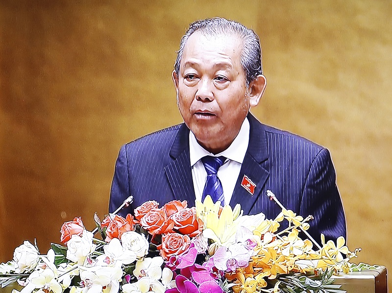 Phó Thủ tướng thường trực Chính phủ Trương Hòa Bình đọc báo cáo tại phiên khai mạc kỳ họp