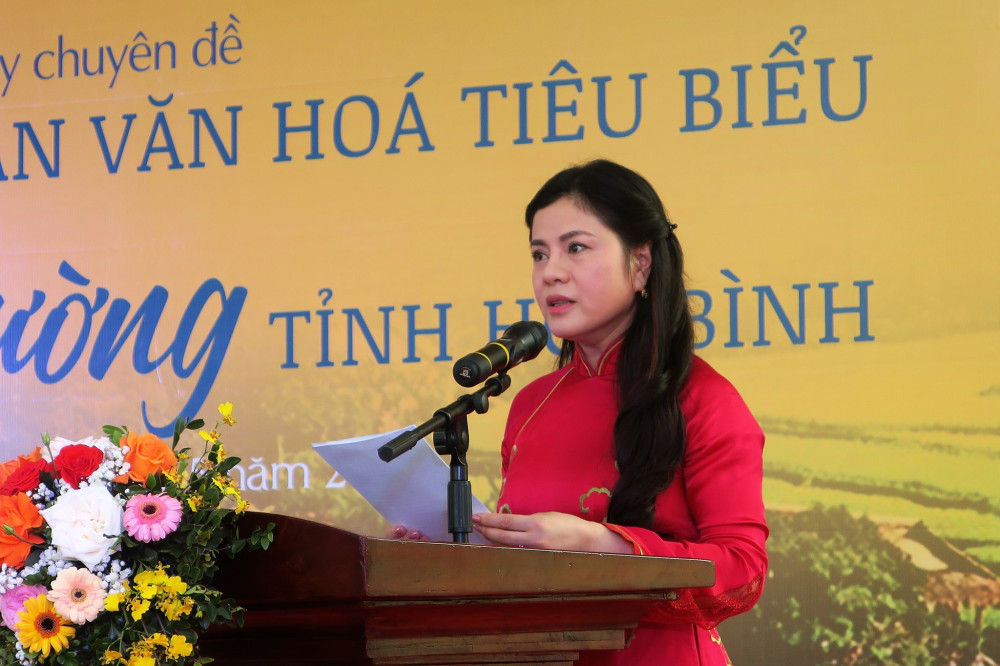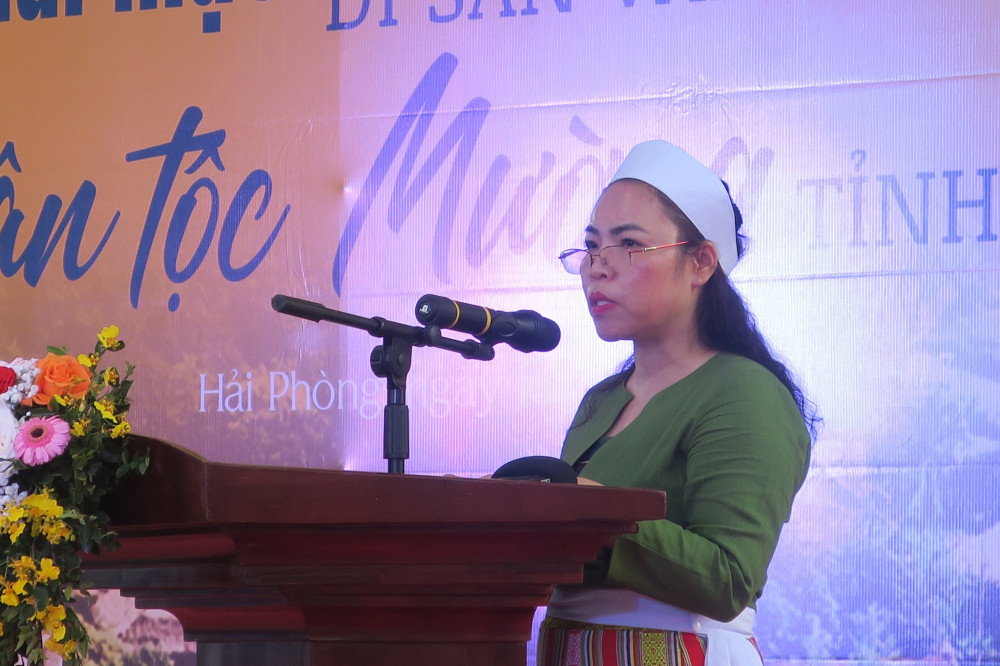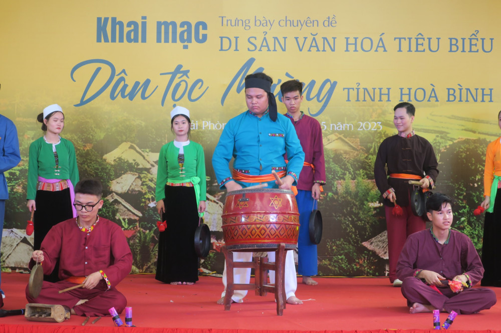 Phát biểu tại chương trình, đồng chí Bùi Thị Niềm, Giám đốc Sở Văn hóa, Thể thao và Du lịch tỉnh Hòa Bình cho biết: Phòng trưng bày “Di sản Văn hóa tiêu biểu của người Mường tỉnh Hòa Bình” với hơn 250 tài liệu, hiện vật gốc và các tài liệu bổ trợ phản ánh một số nét đặc trưng văn hóa người Mường tỉnh Hòa Bình sẽ giúp cho quý khách có dịp được tiếp xúc, tìm hiểu và nghiên cứu về những di sản văn hóa tiêu biểu của dân tộc Mường tỉnh Hòa Bình. Đặc biệt, lần đầu tiên tại phòng trưng bày này, quý khách sẽ được tìm hiểu về giá trị đặc biệt của các di sản văn hóa phi vật thể: Nghệ thuật Chiêng Mường, Mo Mường; Tri thức Lịch Đoi (Lịch tre) và Lễ hội Khai Hạ đã được Bộ Văn hóa, Thể thao và Du lịch cấp chứng nhận đưa vào Danh mục di sản văn hóa phi vật thể Quốc gia.