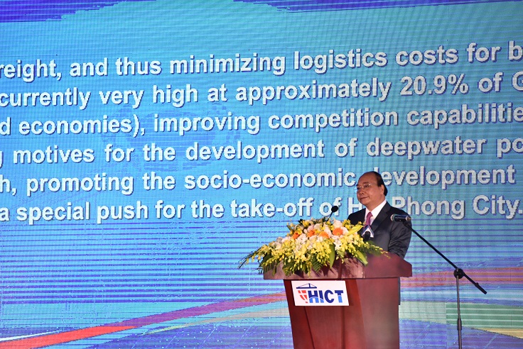 Phát biểu tại buổi Lễ, Thủ tướng Chính phủ Nguyễn Xuân Phúc ghi nhận và biểu dương sự nỗ lực của Chủ đầu tư, các đơn vị, nhà thầu thi công, các Bộ, ngành và thành phố Hải Phòng, đã triển khai khối lượng công việc rất lớn, đảm bảo chất lượng, hiệu quả, khai thác đúng tiến độ cam kết.