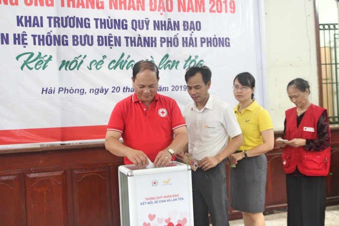 Sau lễ phát động, cán bộ, công chức, viên chức của và Hội Chữ thập đỏ và Bưu điện thành phố cũng đã tiến hành quyên góp ủng hộ vào “Thùng quỹ nhân đạo”.