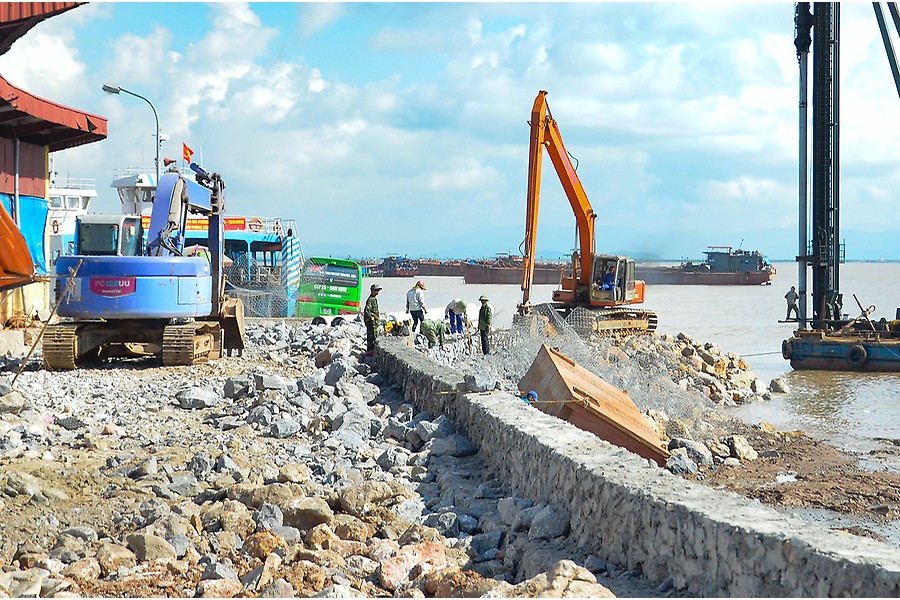 Bên cạnh việc mở rộng bến phà, đường dẫn xuống phà được Sở GTVT khẩn trương thi công