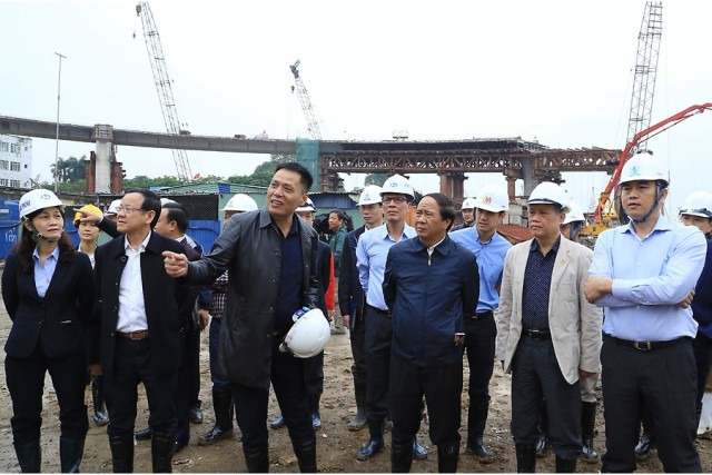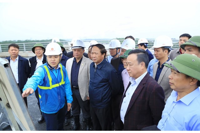 Đồng chí Lê Văn Thành, Ủy viên Trung ương Đảng, Bí thư Thành ủy, Chủ tịch HĐND thành phố kiểm tra tiến độ thi công cầu Vũ Yên.