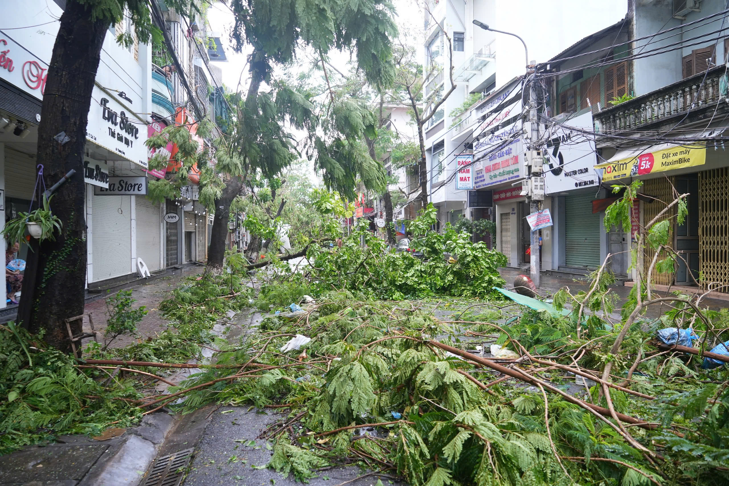 Khu vực quận Đồ Sơn, Dương Kinh, Công ty Cổ phần Công trình công cộng và Dịch vụ du lịch Hải Phòng (230 người, 20 phương tiện xe, cẩu các loại) bố trí nhân lực, phương tiện để thực hiện giải tỏa các cành, cây bị gãy đổ, bật gốc; thu gom, vận chuyển cành cây, lá cây; trồng dựng lại các cây xanh bị đổ, bật gốc.