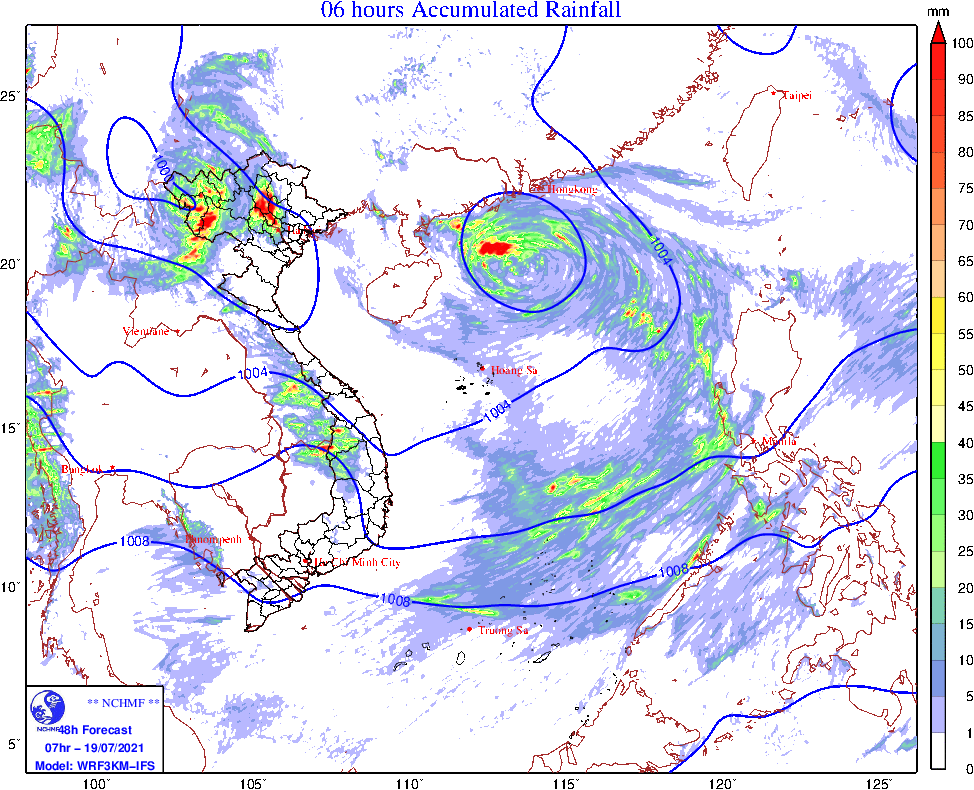 Ban Chỉ đạo Trung ương về Phòng chống thiên tai nêu rõ: Hồi 13 giờ ngày 17.7, vùng áp thấp ở vị trí 17,7-18,7 độ vĩ Bắc; 116,8-117,8 độ kinh Đông. Từ ngày 17-20.7 ở vùng biển phía Đông khu vực bắc biển Đông, khu vực giữa và nam biển Đông (bao gồm cả vùng biển quần đảo Trường Sa), vùng biển từ Bình Thuận đến Cà Mau có mưa rào và giông; trong mưa giông có khả năng xảy ra lốc xoáy và gió giật mạnh.