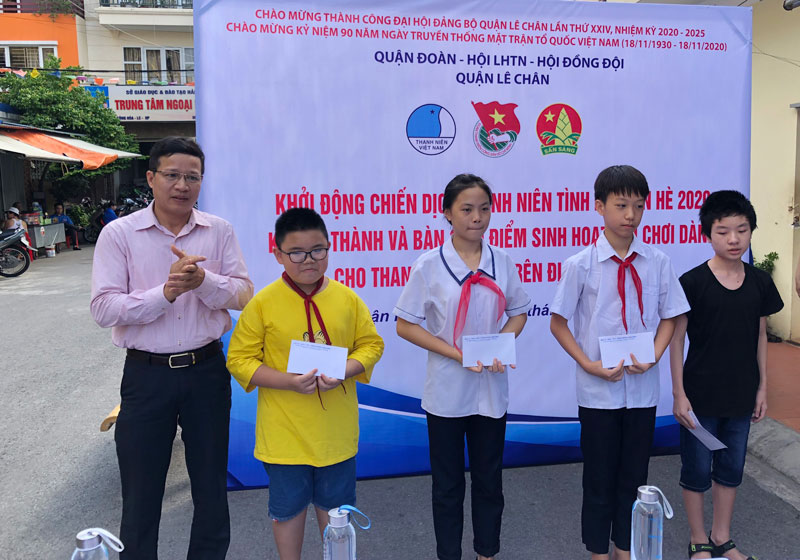 Thiết thực thi đua lập thành tích chào mừng thành công Đại hội đại biểu Đảng bộ quận Lê Chân lần thứ XXIV, nhiệm kỳ 2020 – 2025; chào mừng Kỷ niệm 90 năm Ngày truyền thống MTTQ Việt Nam (18/11/1930 – 18/11/2020). Sáng 8/7, Quận đoàn – Phòng Giáo dục và Đào tạo phối hợp với phường Niệm Nghĩa, quận Lê Chân tổ chức khởi động Chiến dịch Thanh niên tình nguyện Hè năm 2020 và khánh thành, bàn giao điểm sinh hoạt, vui chơi cho thanh thiếu nhi tại Tổ dân phố số 23, phường Niệm Nghĩa.