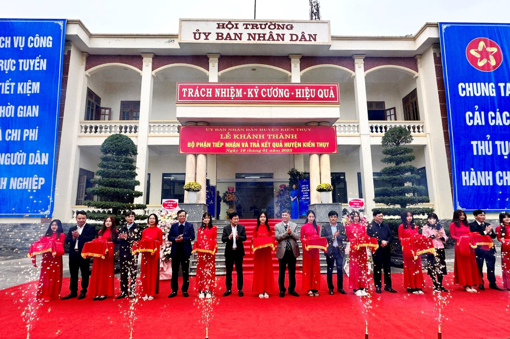Bộ phận “một cửa” huyện Kiến Thụy được thành lập từ cuối năm 2009, đến năm 2012, UBND huyện tiếp tục đầu tư xây dựng Bộ phận Tiếp nhận và Trả kết quả huyện theo hướng hiện đại hơn, diện tích xây dựng được mở rộng, đầu tư mới. Các cơ quan, đơn vị đã nghiêm túc thực hiện các quy định tiếp nhận, xử lý, trả kết quả theo cơ chế một cửa liên thông, giải quyết các thủ tục hành chính theo đúng thẩm quyền, qua đó góp phần đổi mới phương thức hoạt động của cơ quan hành chính nhà nước theo hướng hiện đại hóa, làm thay đổi tích cực mối quan hệ giữa chính quyền với người dân và cộng đồng doanh nghiệp; từng bước cải thiện môi trường đầu tư kinh doanh. Những năm gần đây chỉ số cải cách hành chính của huyện luôn nằm trong tốp đầu, đặc biệt năm 2022 chỉ số cải cách hành chính của huyện vươn lên xếp thứ 2 toàn thành phố.