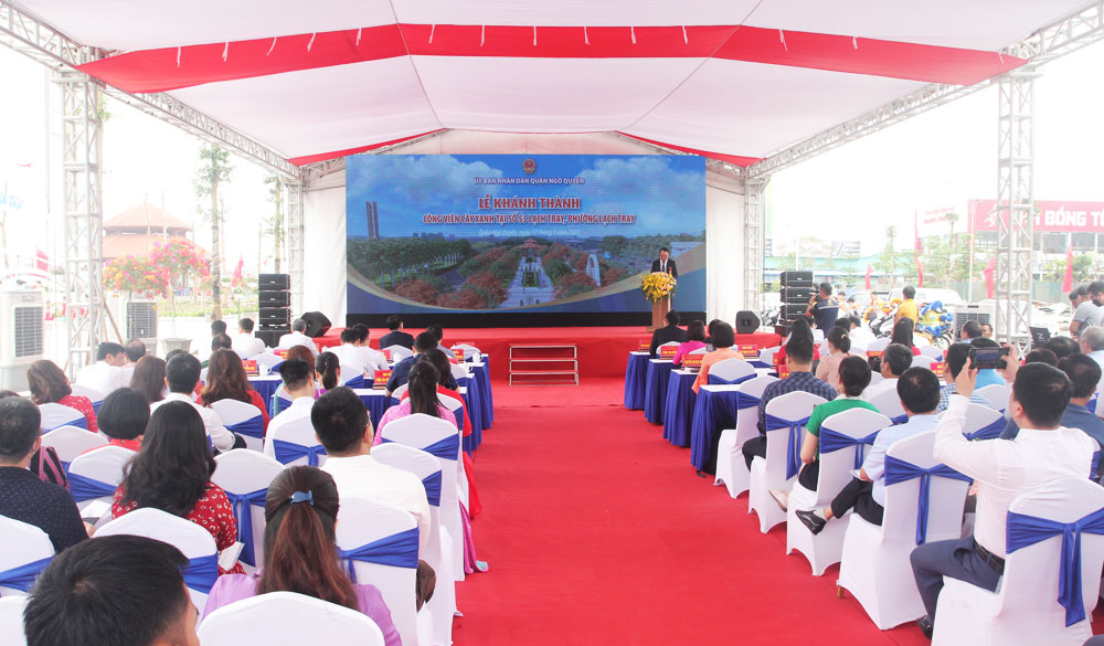 Sáng 13/5, UBND quận Ngô Quyền tổ chức Lễ khánh thành Công viên cây xanh tại số 53 Lạch Tray, phường Lạch Tray. Đến dự chương trình có các đồng chí Đào Khánh Hà, Ủy viên Ban Thường vụ Thành ủy, Trưởng Ban Tuyên giáo Thành ủy; đồng chí Lê Khắc Nam, Phó Chủ tịch UBND thành phố; cùng các đồng chí đại diện lãnh đạo các Ban, ngành, địa phương, đơn vị liên quan trên địa bàn thành phố.