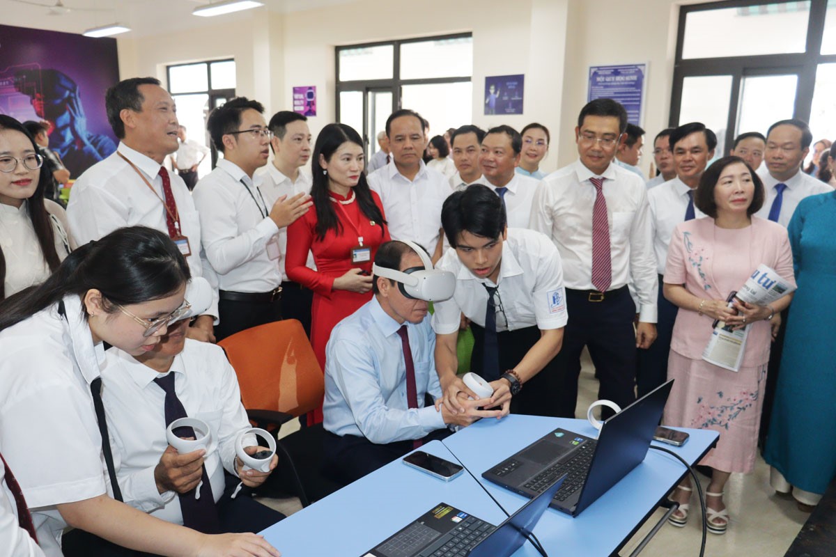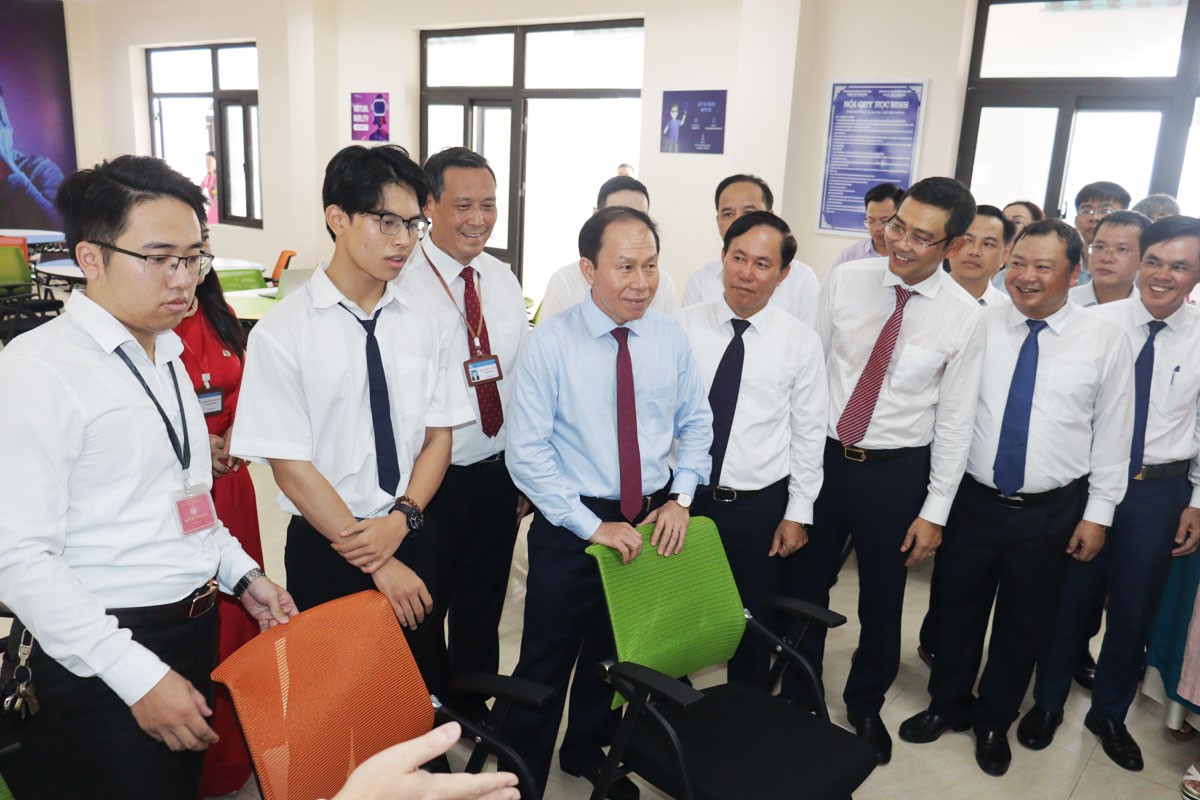 Sau 02 năm tập trung nỗ lực thi công, đến nay dự án đã hoàn thành các hạng mục đảm bảo các yếu tố về chất lượng, kỹ thuật với quy mô phù hợp Quy chuẩn kỹ thuật Quốc gia về quy hoạch xây dựng năm 2021 của Bộ Xây dựng và Tiêu chuẩn cơ sở vật chất trường THPT năm 2020 của Bộ Giáo dục và Đào tạo gồm: 01 nhà hành chính, văn phòng 04 tầng; 03 nhà chức năng, 04 tầng (gồm phòng học, phòng chức năng, thư viện, căng tin,…); 01 nhà đa năng 02 tầng; 01 nhà để xe 02 tầng, hệ thống phòng cháy chữa cháy, cùng các hạng mục phụ trợ và hạ tầng kỹ thuật khác theo quy định. Tổng số 22 phòng làm việc, 01 hội trường, 37 phòng học văn hoá, 13 phòng học chức năng (gồm âm nhạc, mỹ thuật, công nghệ, tin học, ngoại ngữ, đa chức năng, vật lý, hóa học, sinh học, STEM,…) với các trang thiết bị đồng bộ.