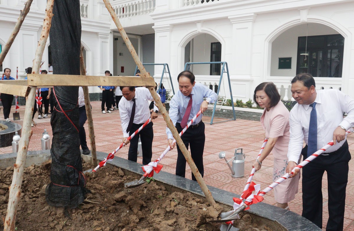 Nhân dịp này, đồng chí Lê Tiến Châu, Ủy viên Trung ương Đảng, Bí thư Thành ủy, Trưởng Đoàn ĐBQH Hải Phòng và lãnh đạo quận đã trồng cây trong khuôn viên Trường THPT Hồng Bàng.