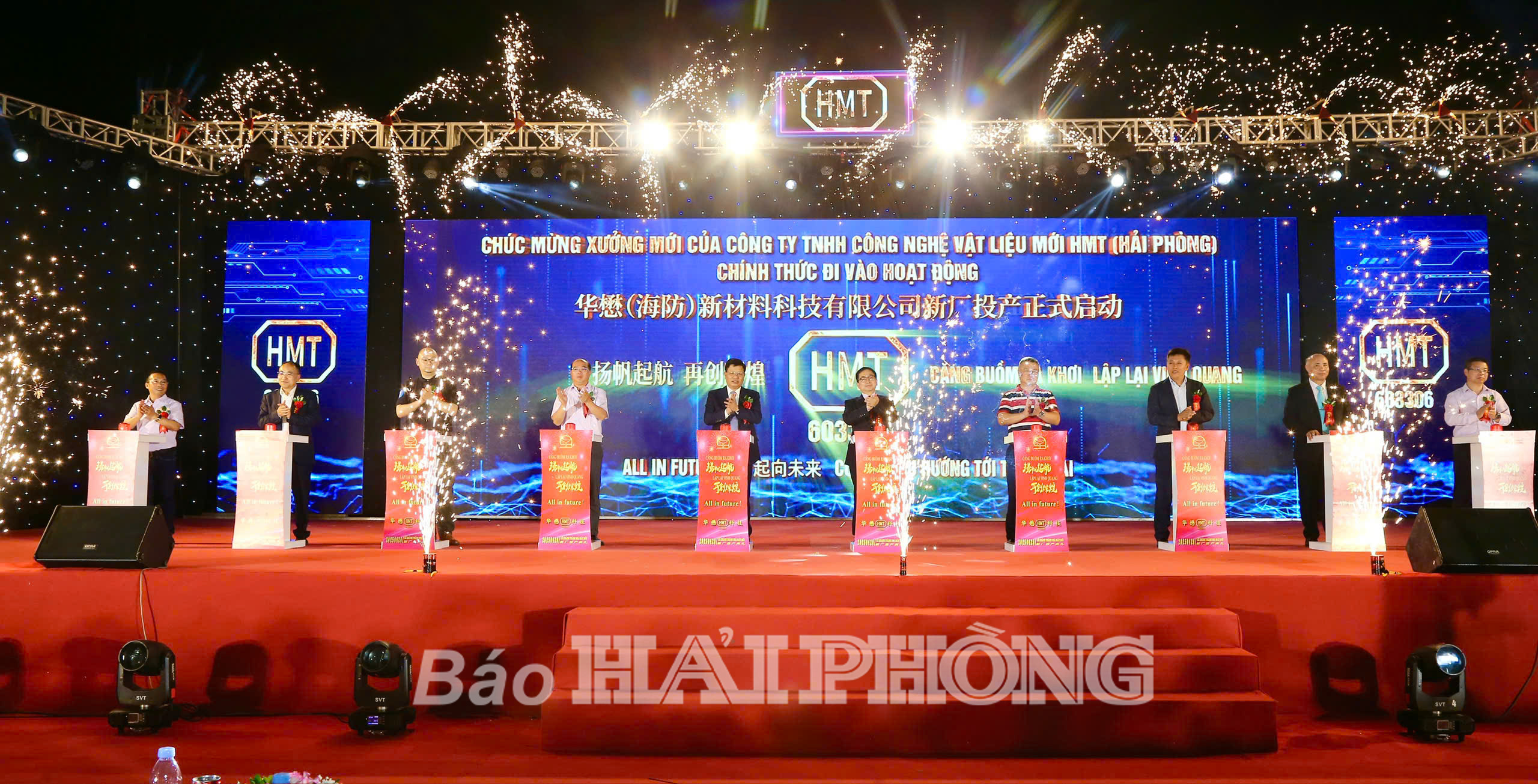Tối 20-4, đồng chí Lê Trung Kiên, Uỷ viên Ban Thường vụ Thành uỷ, Trưởng Ban Quản lý Khu Kinh tế Hải Phòng dự Lễ khánh thành nhà máy của Công ty TNHH Công nghệ vật liệu mới HMT Hải Phòng tại Khu công nghiệp An Dương.