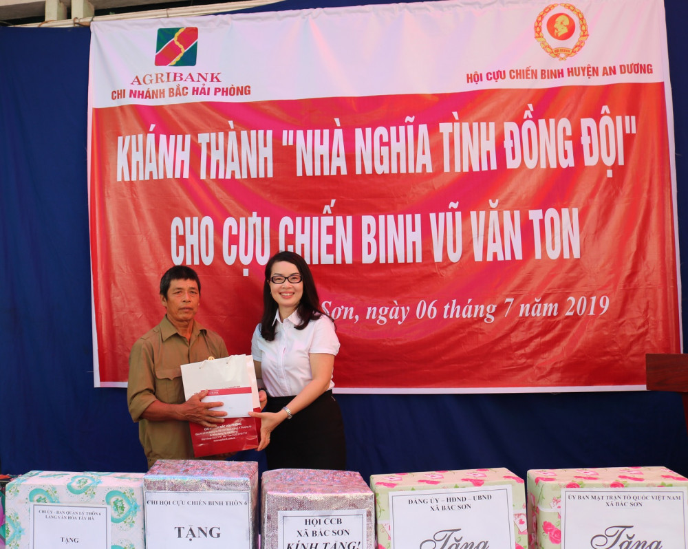 Sáng 6-7, Ban Chấp hành Hội cựu chiến binh xã Bắc Sơn và chính quyền địa phương phối hợp với Ngân hàng nông nghiệp và Phát triển nông thôn (Agribank) chi nhánh Bắc Hải Phòng tổ chức lễ khánh thành nhà tặng cựu chiến binh Vũ Văn Ton, ở thôn 6, xã Bắc Sơn, huyện An Dương.