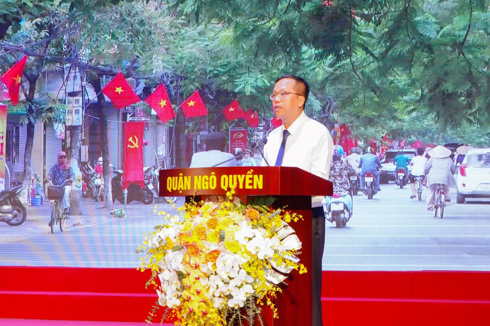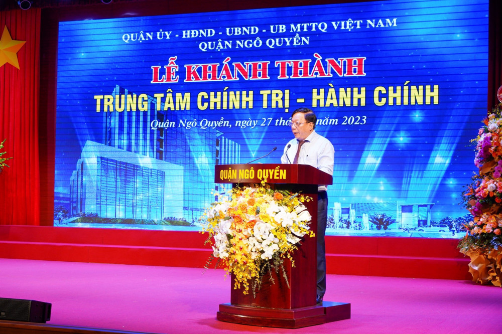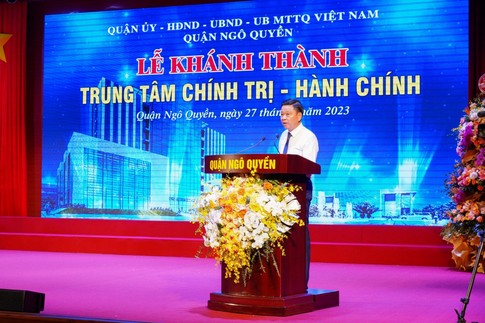 Phát biểu tại buổi Lễ, Chủ tịch UBND quận Ngô Quyền, Cáp Trọng Tuấn trân trọng cảm ơn sự quan tâm, tạo điều kiện của Thành ủy, HĐND, UBND, UBMTTQ Việt Nam thành phố, sự giúp đỡ của các Sở, Ban, ngành; cùng quyết tâm của cả hệ thống chính trị quận, sự đồng thuận của Nhân dân, các Tổ dân phố phường Đông Khê trong thời gian qua. Đến nay, công trình Trung tâm Chính trị-Hành chính Quận Ngô Quyền được hoàn thành với diện mạo mới, khang trang, văn minh và hiện đại. Đây có thể coi là dấu mốc quan trọng trong quá trình xây dựng và phát triển của quận, hiện thực hóa ước mơ và tâm huyết của nhiều thế hệ lãnh đạo, cán bộ, đảng viên quận qua các thời kỳ.