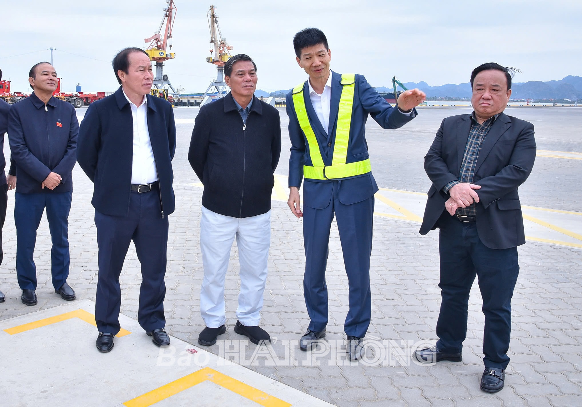 Trong sáng cùng ngày, các đồng chí: Lê Tiến Châu, Ủy viên Trung ương Đảng, Bí thư Thành ủy, Trưởng Đoàn đại biểu Quốc hội Hải Phòng; Nguyễn Văn Tùng, Chủ tịch UBND thành phố và đại diện lãnh đạo các sở, ngành, địa phương tham quan, khảo sát công tác đầu tư, chuẩn bị việc khai thác thương mại bến 5, 6 của Công ty Cảng container quốc tế Hateco Hải Phòng tại Cảng cửa ngõ quốc tế Hải Phòng./.