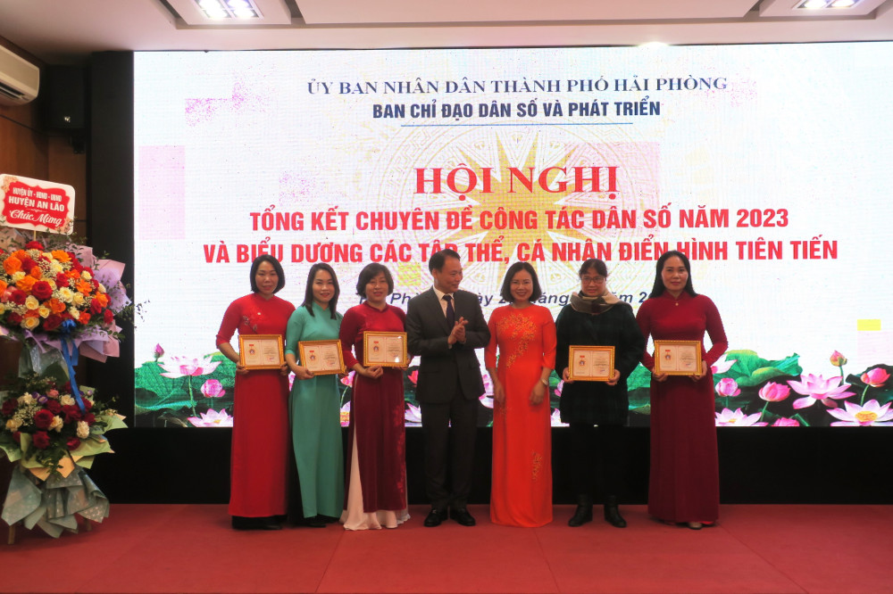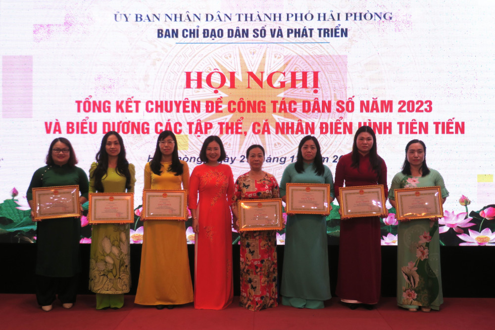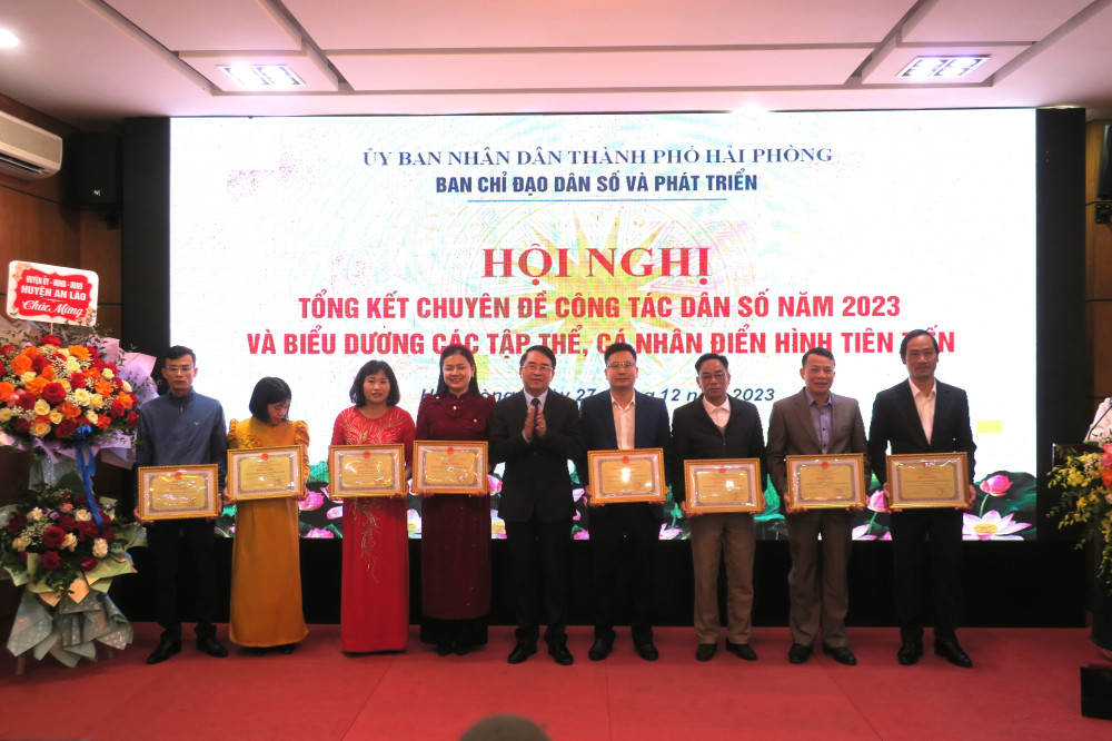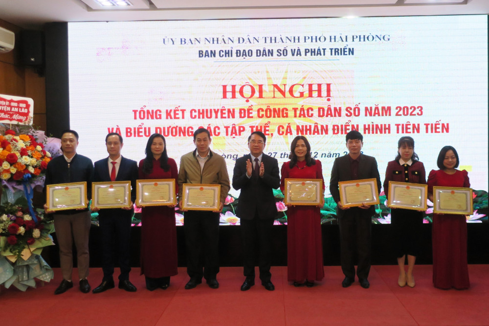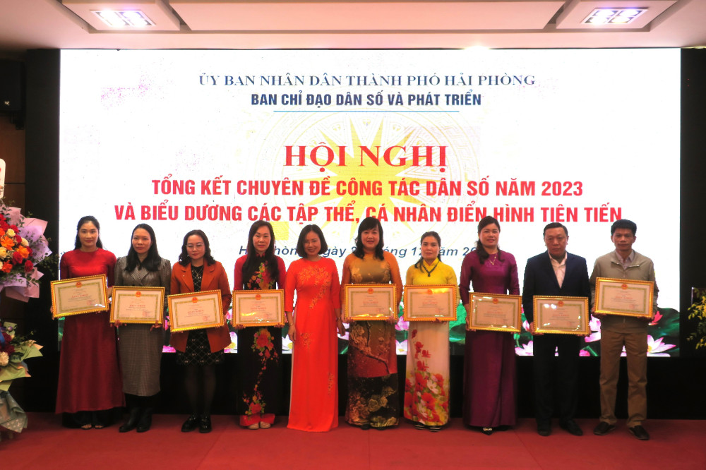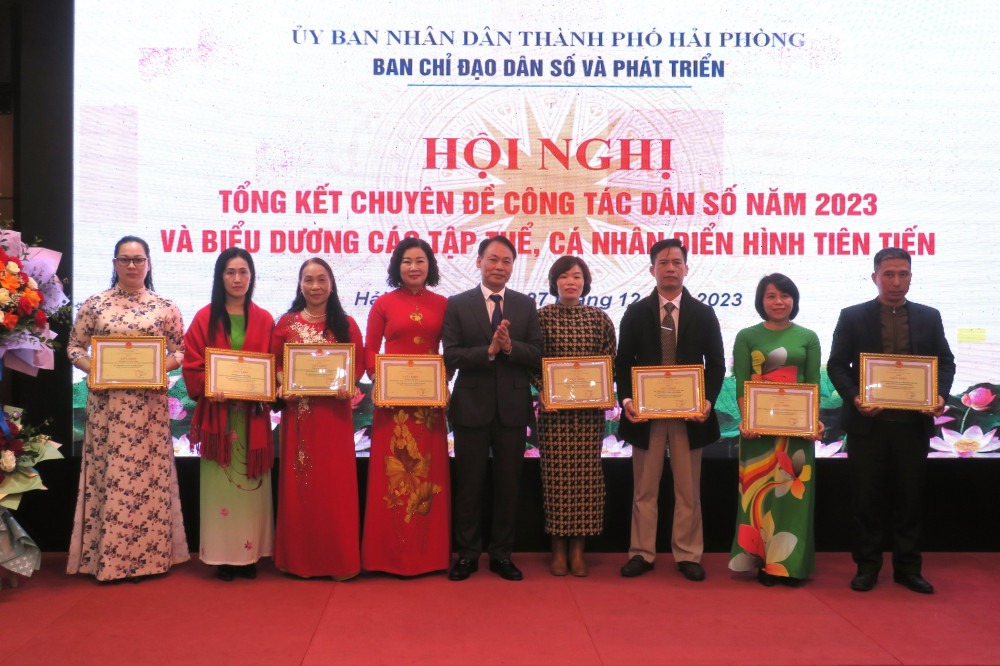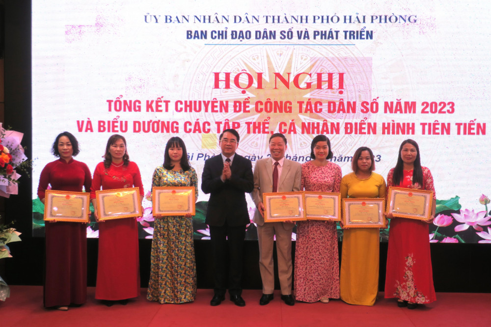 Ghi nhận những kết quả đạt được, nhân dịp này, các cấp, các ngành giành tặng nhiều khen thưởng cho các tập thể, cá nhân của thành phố có thành tích xuất sắc trong công tác dân số kế hoạch hóa gia đình năm 2023. Trong đó, UBND thành phố tặng Bằng khen cho 16 tập thể, 7 cá nhân; Bộ Y tế tặng Kỷ niệm chương Vì sự nghiệp Dân số cho 233 cá nhân; Cục Dân số-Bộ Y tế tặng Giấy khen 9 tập thể, 9 cá nhân; Sở Y tế Hải Phòng tặng Giấy khen cho 3 tập thể, 5 cá nhân.