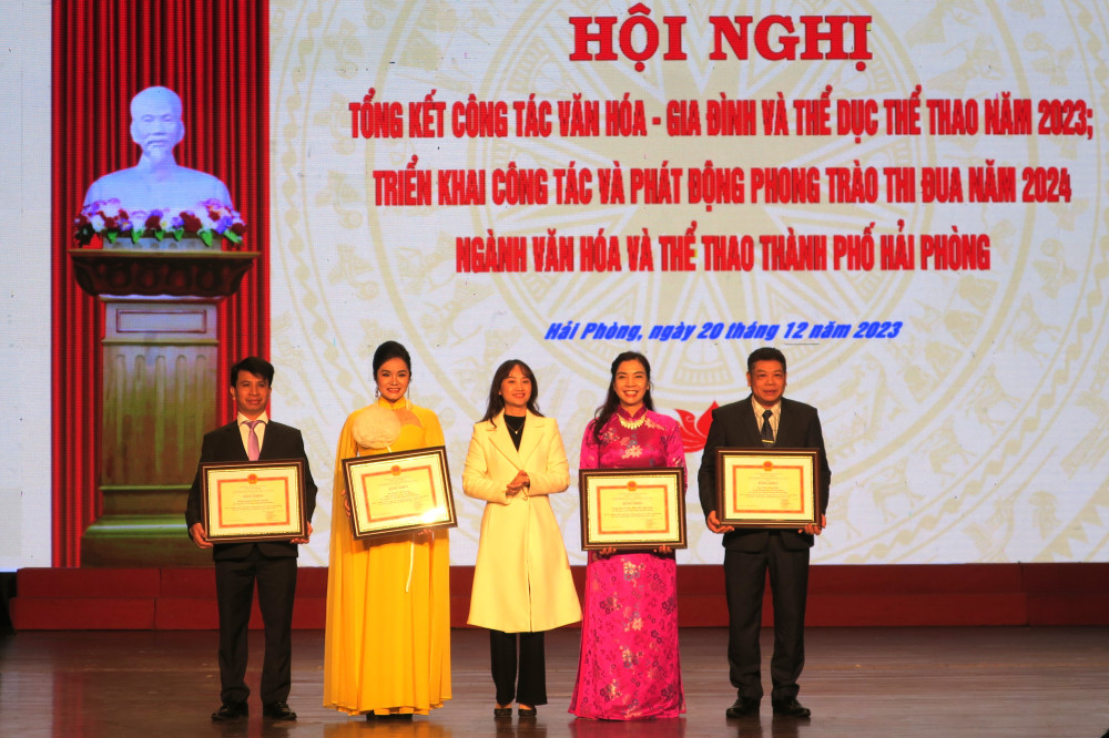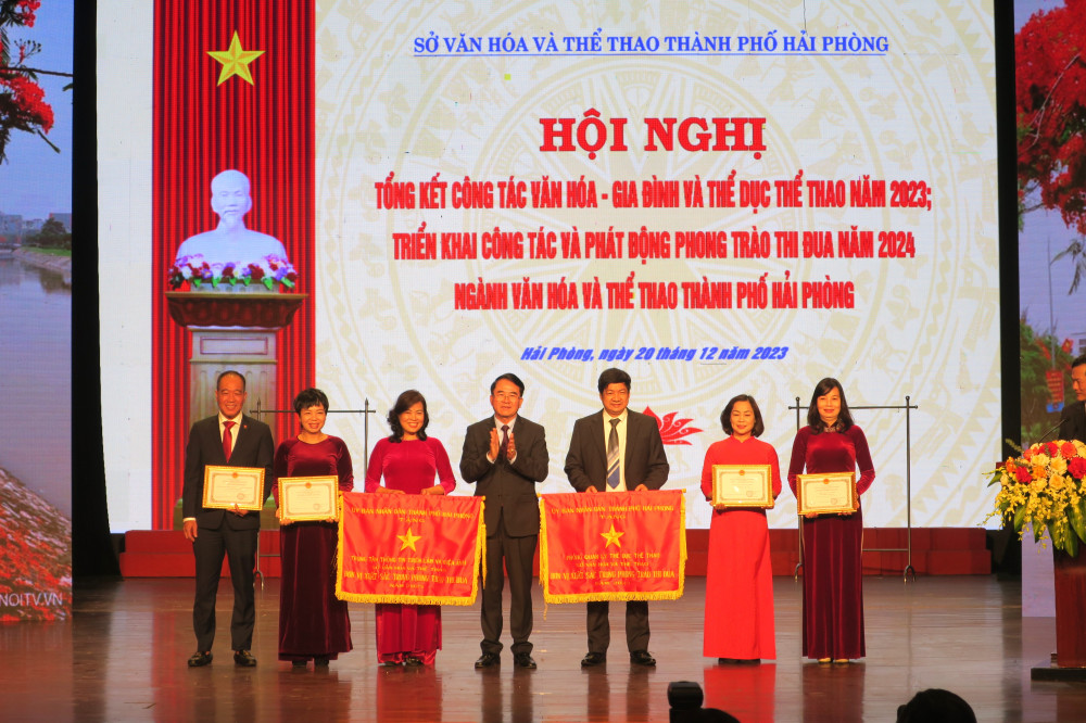 Ghi nhận những thành tích đạt được, Thủ tướng Chính phủ tặng Bằng khen cho Trung tâm Thông tin, Triển lãm và Điện ảnh thành phố đã có thành tích xuất sắc trong công tác tuyên truyền phục vụ các nhiệm vụ chính trị của đất nước và thành phố Hải Phòng giai đoạn từ năm 2018-2022. Bộ Văn hóa Thể thao và Du lịch tặng Bằng khen cho 2 tập thể và 2 cá nhân của ngành có thành tích xuất sắc trong quản lý, tổ chức hoạt động văn hóa và thể thao tại địa phương năm 2023. UBND thành phố tặng Cờ thi đua cho 02 tập thể thuộc Sở đã có thành tích hoàn thành xuất sắc toàn diện nhiệm vụ công tác, dẫn đầu khối thi đua năm 2023; tặng danh hiệu “Tập thể Lao động xuất sắc” cho 06 đơn vị; tặng Bằng khen cho 03 tập thể và 12 cá nhân. Sở Văn hóa và Thể thao cũng khen thưởng nhiều tập thể, cá nhân có thành tích xuất sắc đóng góp chung vào thành tích của ngành trong năm 2023.